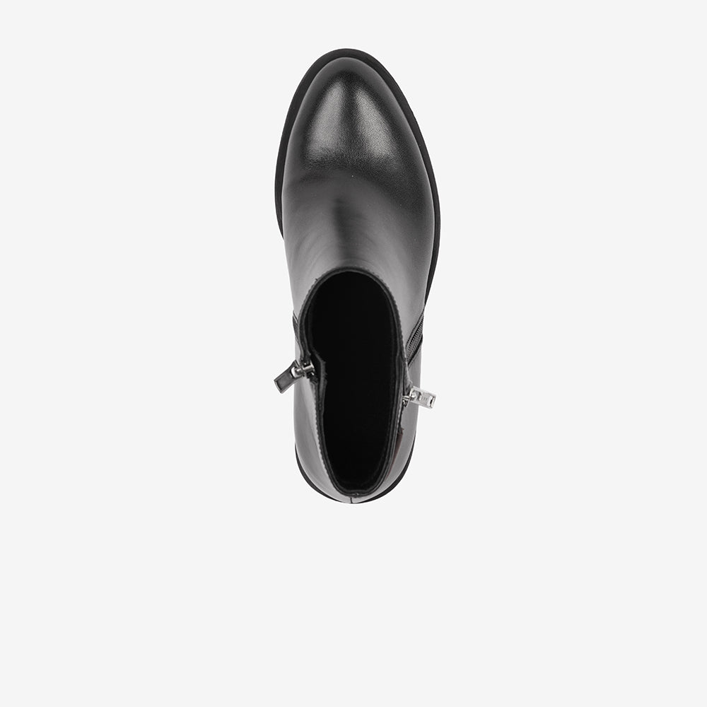 Dieser Schuh ist nicht nur hochhackig, sondern auch robust und langlebig. Perfekt für alle, die auf der Suche nach stilvollem Schuhwerk sind, das dem täglichen Gebrauch standhält. Mit dieser Stiefelette erhalten Sie sowohl Eleganz als auch Funktionalität in einem.